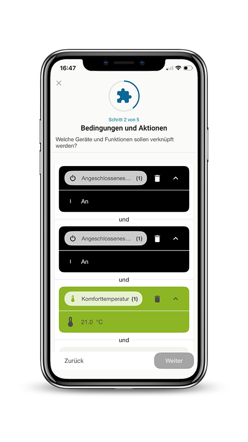 Licht dimmen, Lüftung runter, Rollläden schließen – alles mit einem einzigen Auslöser? Ab sofort kein Problem mehr: Mit dem App-Update 2.18.2 kannst du in einer Regel bis zu fünf verschiedene Geräte gleichzeitig steuern. Das macht dein smartes Zuhause nicht nur komfortabler, sondern auch deutlich übersichtlicher.